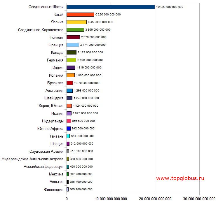 | 10. | Российская федерация ::: | 1 322 000 000 000 дол. США | График : |